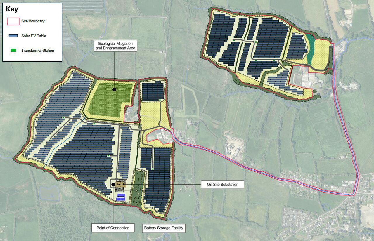 Yes, the project includes solar panels on both White House Farm and Middle Hill Farm. An indicative site plan is provided below. - Have the Community Council been provided with information on the project?